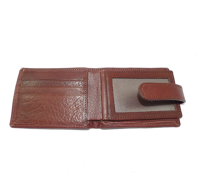 Billetera de cuero vacuno con volante y rabillo.