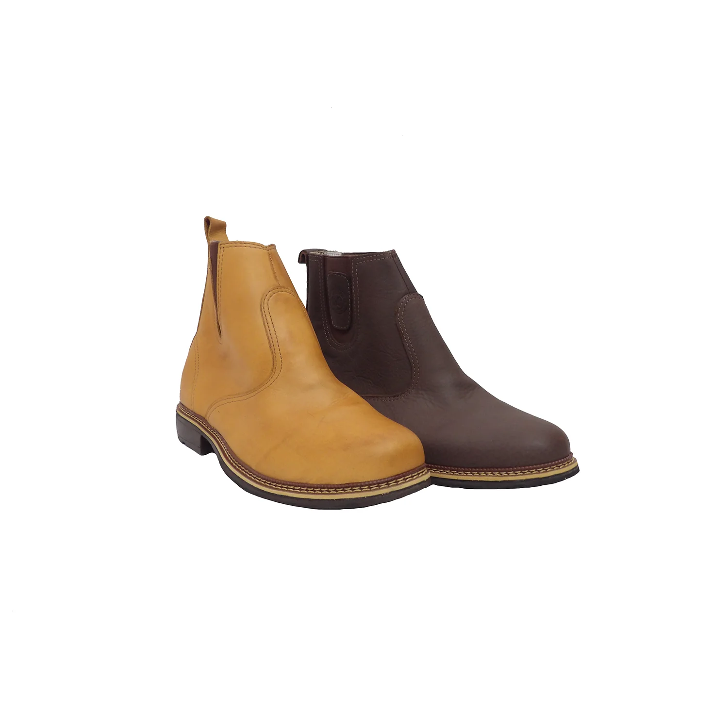 Confeccionada en cuero vacuno con fondo de goma cosido y pegado.