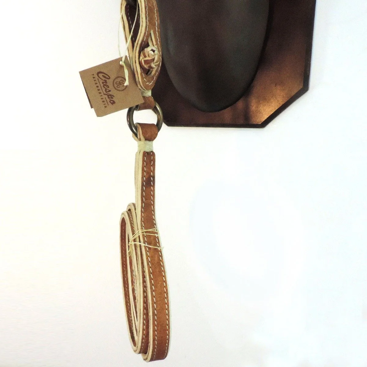 Bozal y cabestro doble de cuero crudo cosido con hilo.