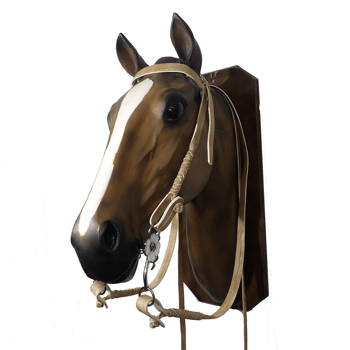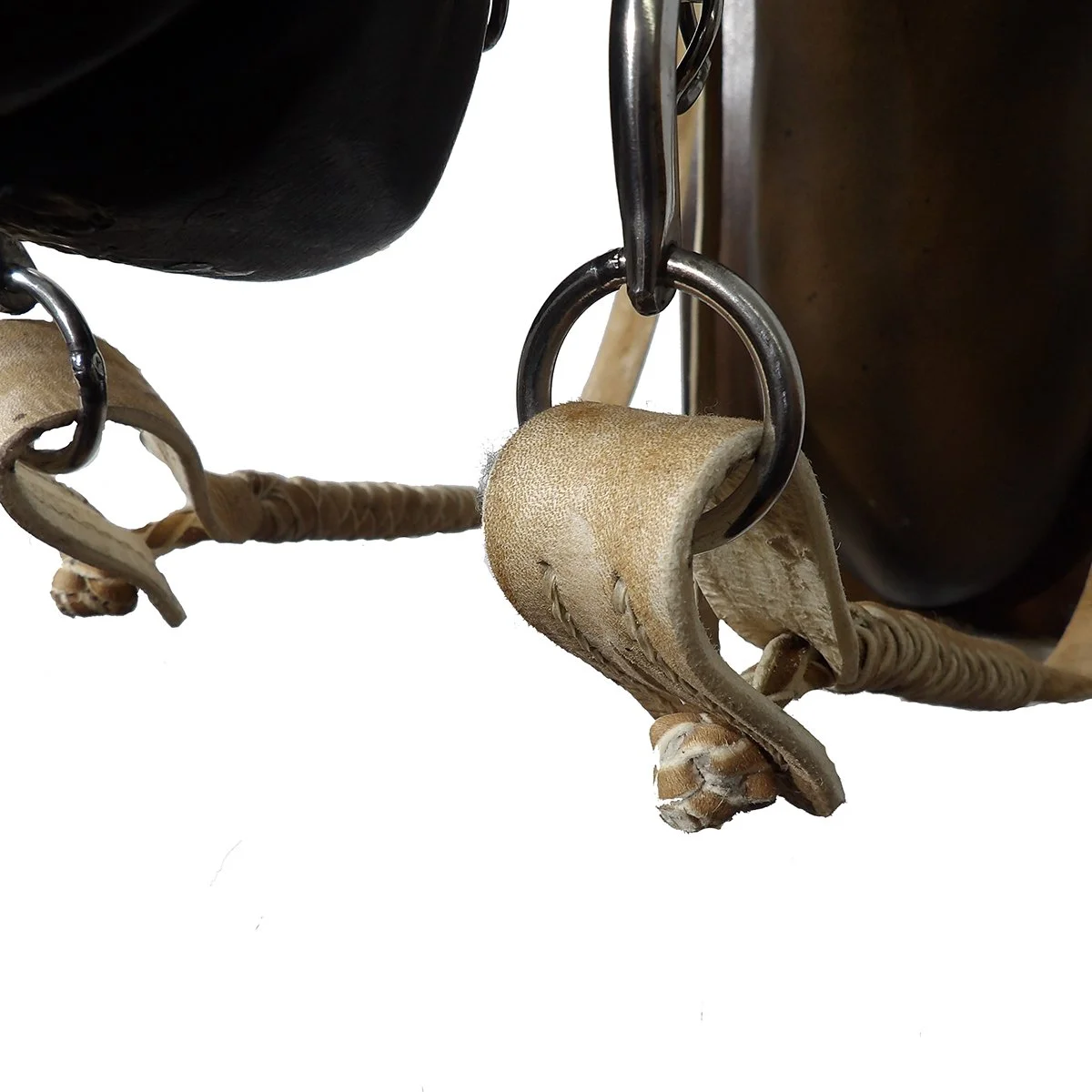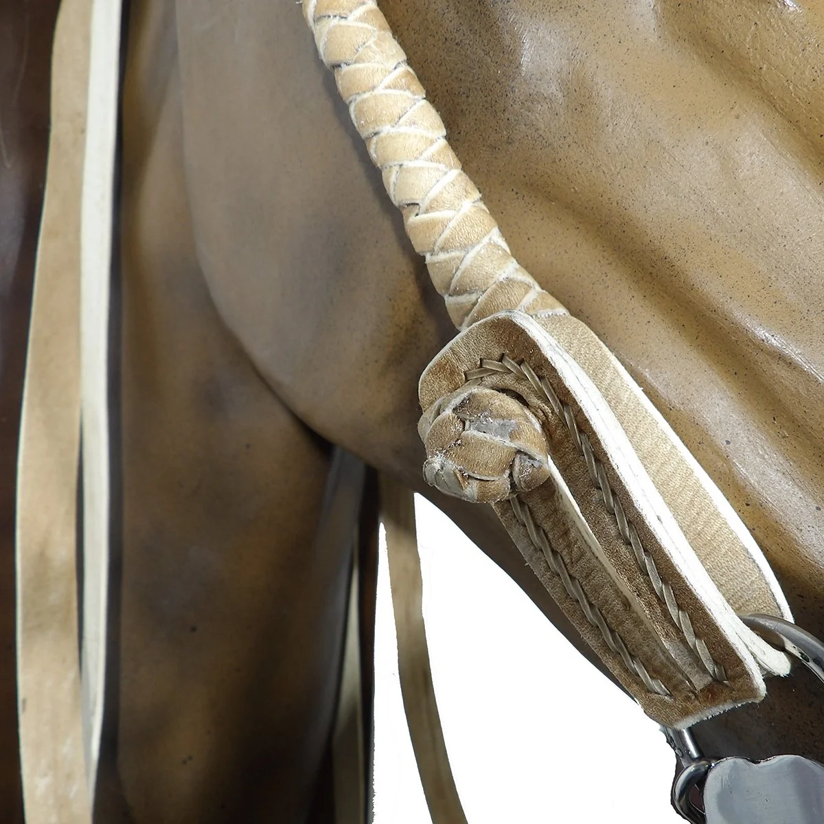 Cabezada y riendas de cuero crudo con macho trenzado y hebilla de acero inoxidable.