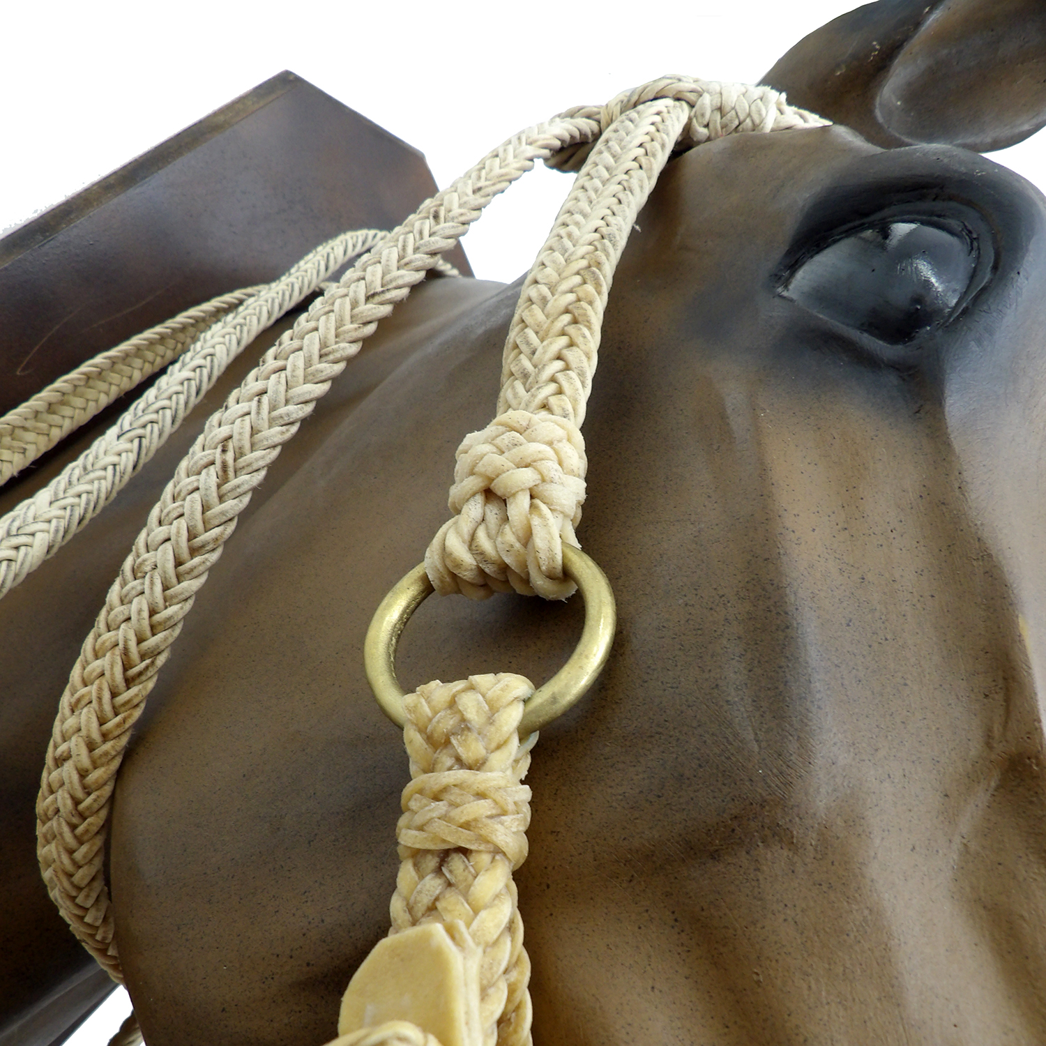 Cabezada y riendas de cuero crudo trenza chata con nudo frentero