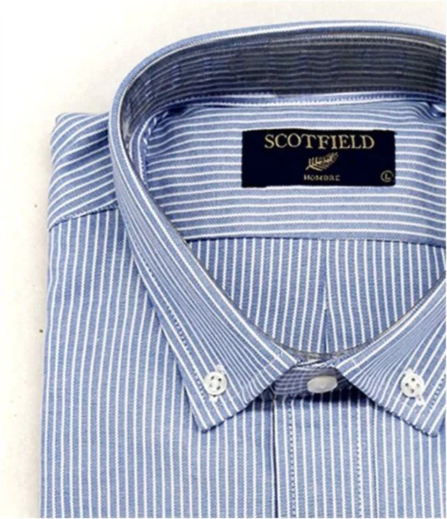 Camisa tela Oxford rayada celeste para hombre