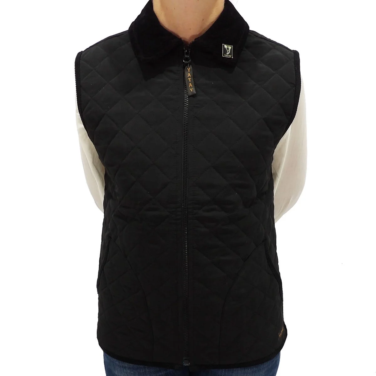 Chaleco de dama de microfibra matelasse negro con cierre