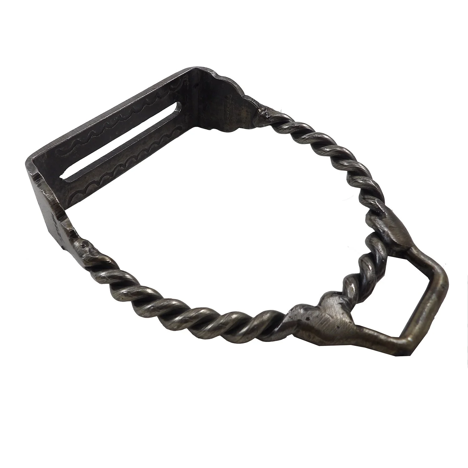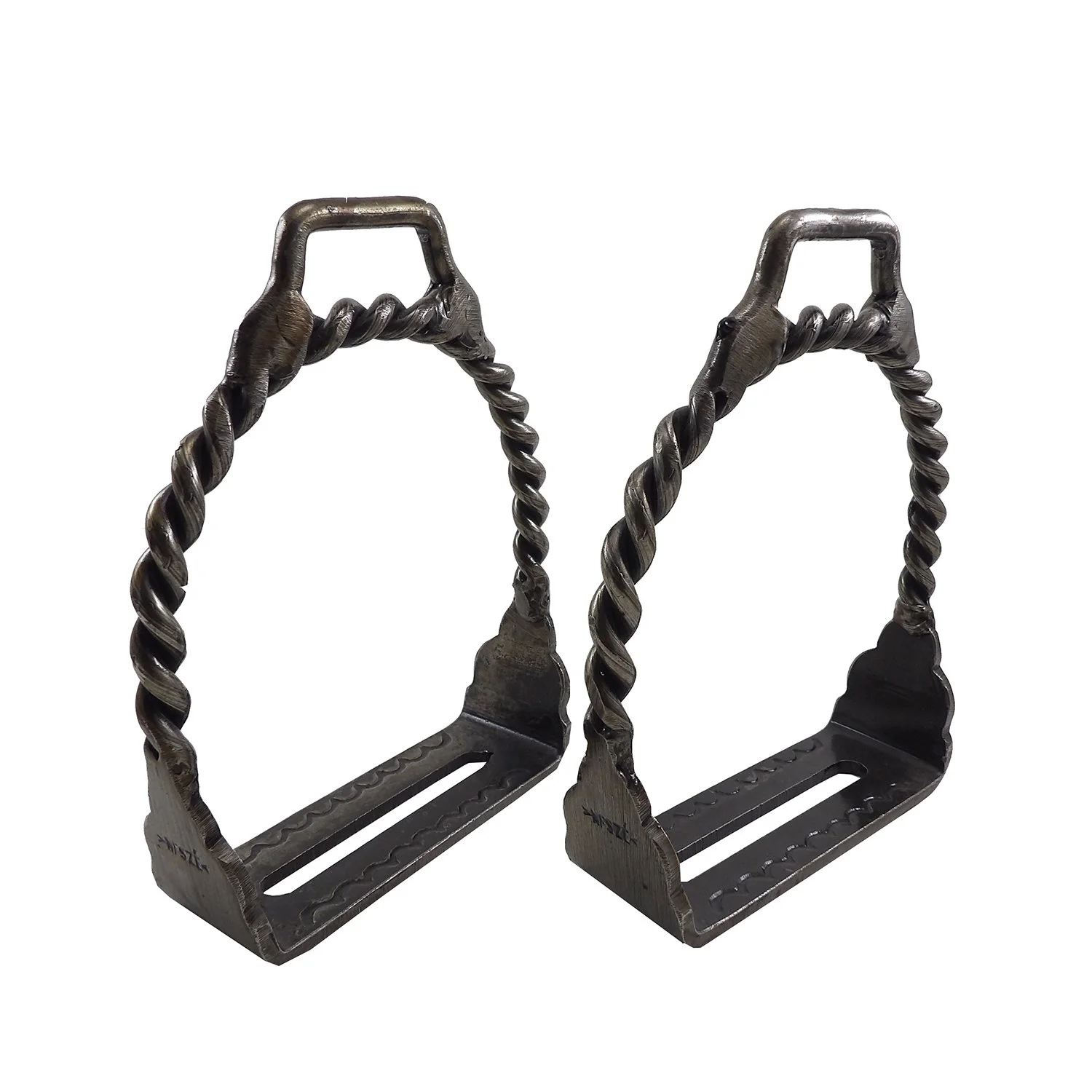 Estribos de hierro pulido modelo criollo retorcido.
