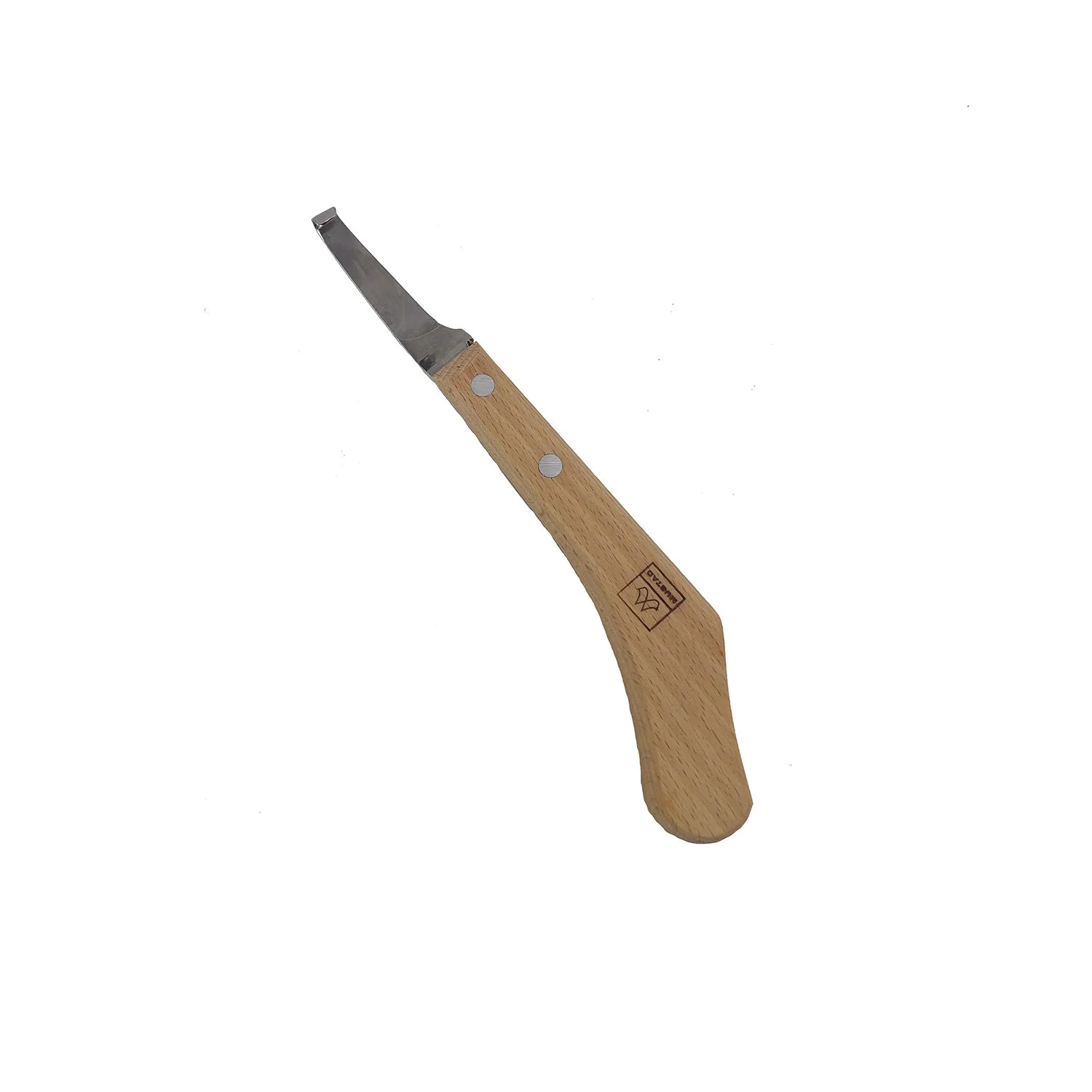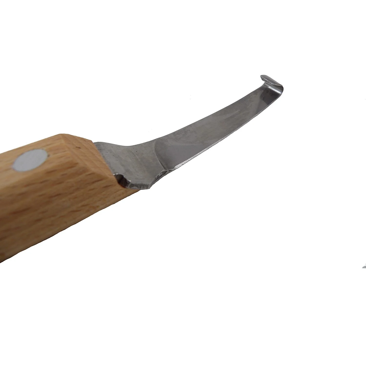 El gancho frontal permite recortar los laterales de la ranilla y también abrir orificios para evitar abscesos.
