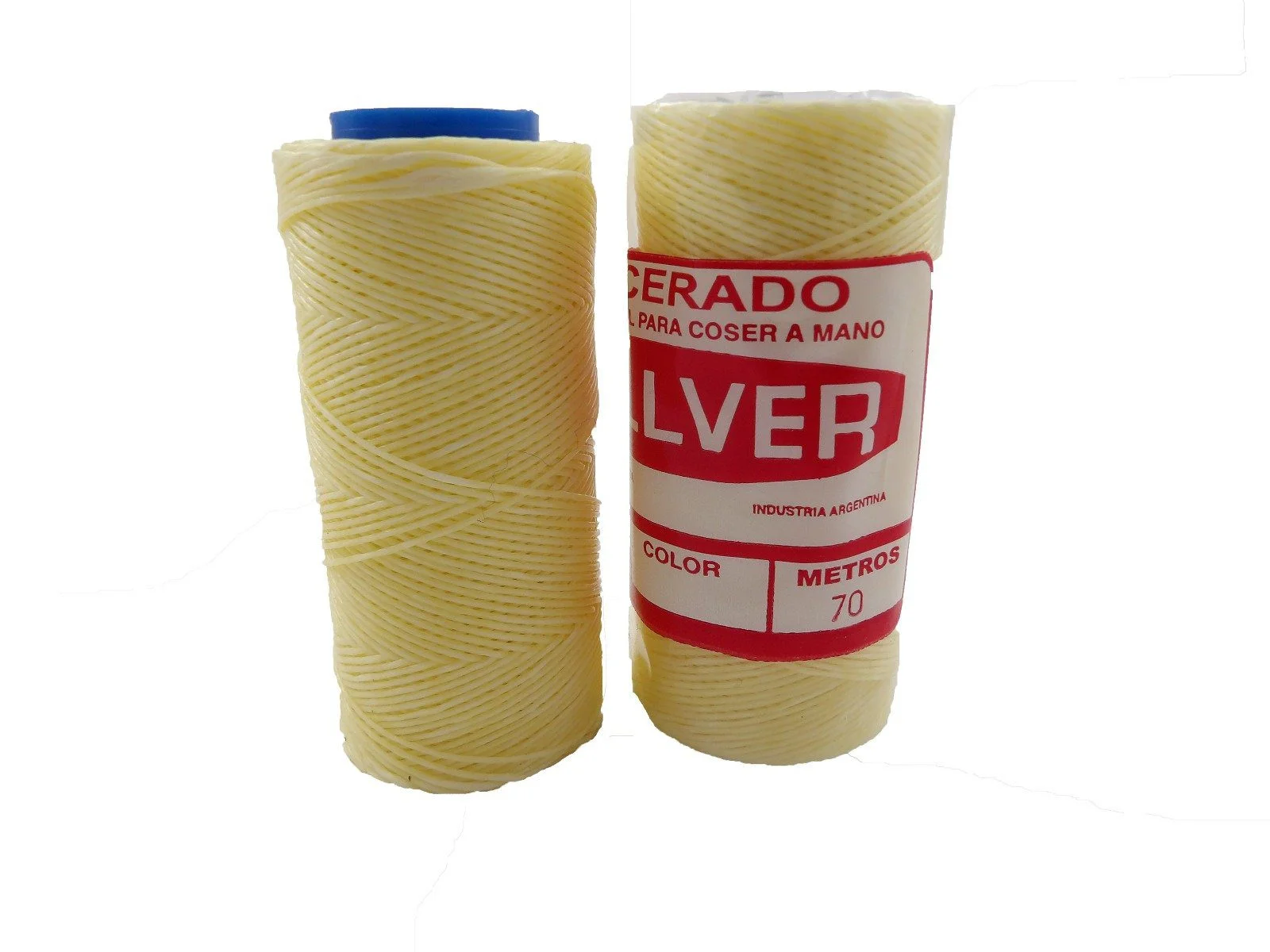 Hilo de nylon encerado en color crudo marca Pillver que posee alta resistencia a la tracción, de uso ideal para el talabartero, zapatero y tapicero. Son hilos bien encerados lo cual permite fácil costura y protección del material del hilo.