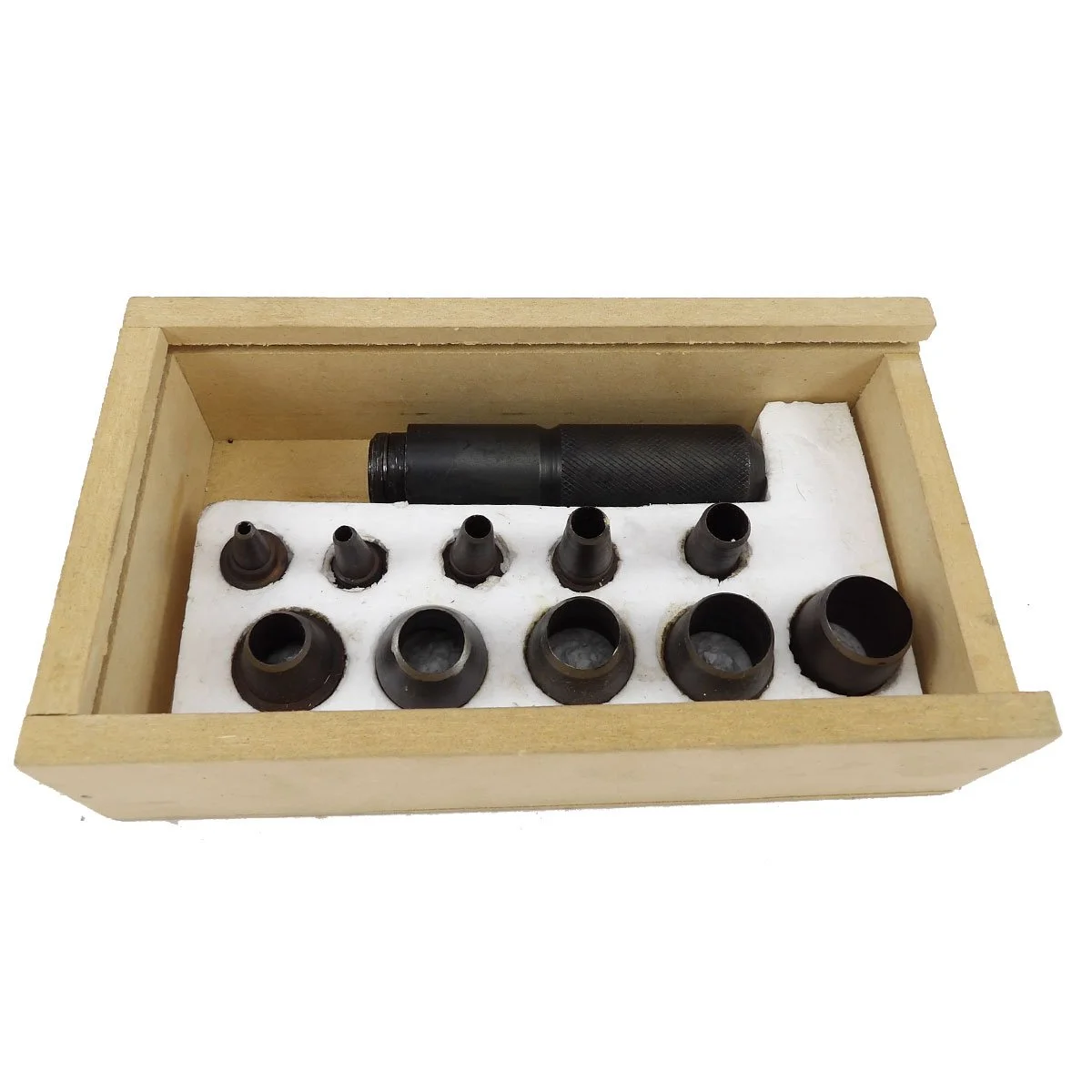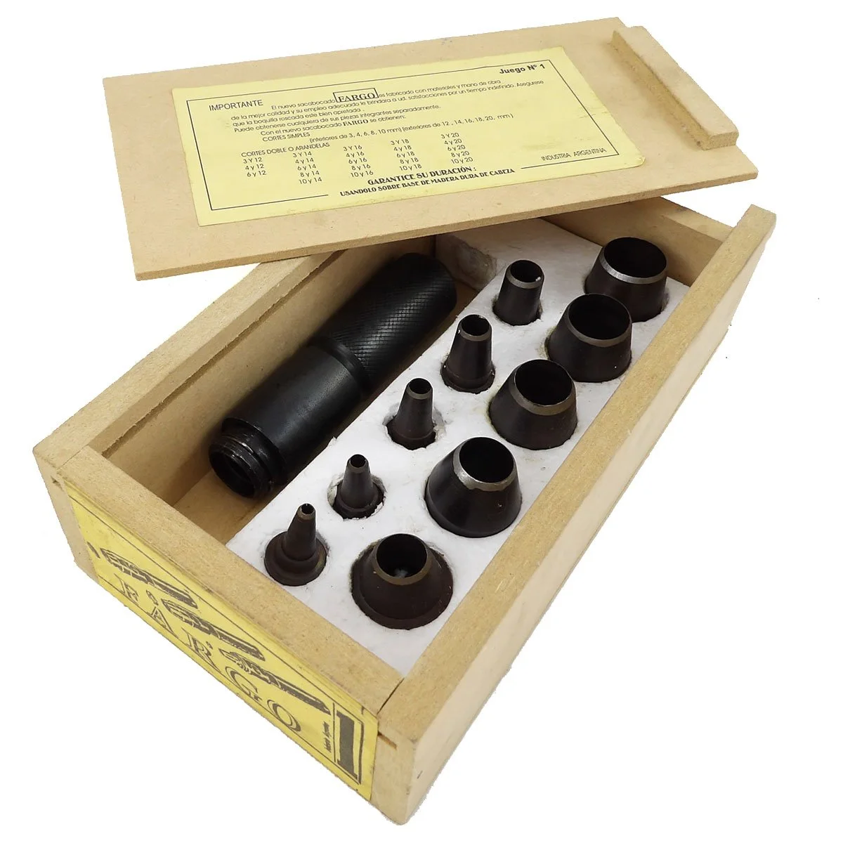 Juego de sacabocados a golpe FARGO Nº1 con 10 medidas intercambiables.