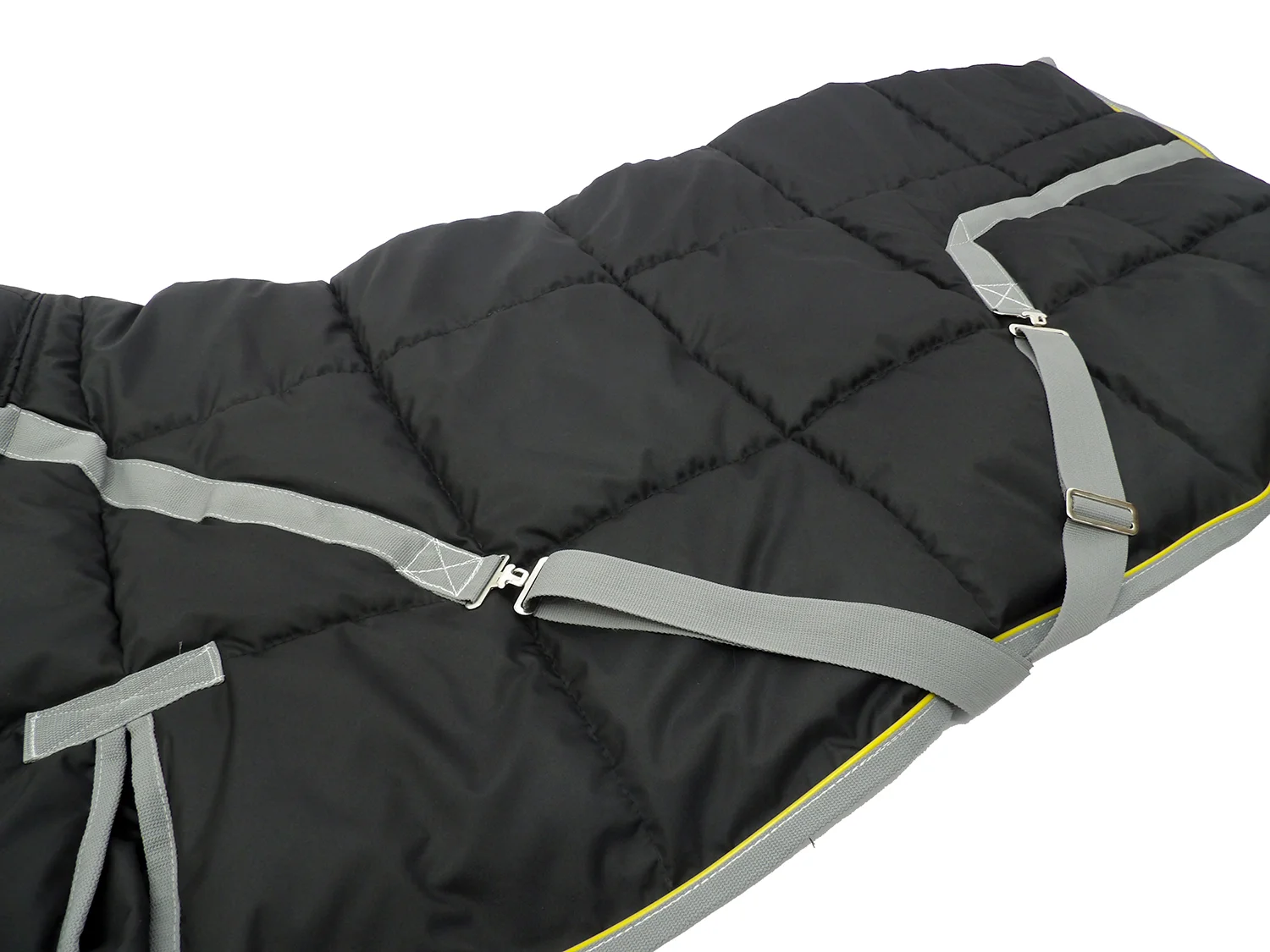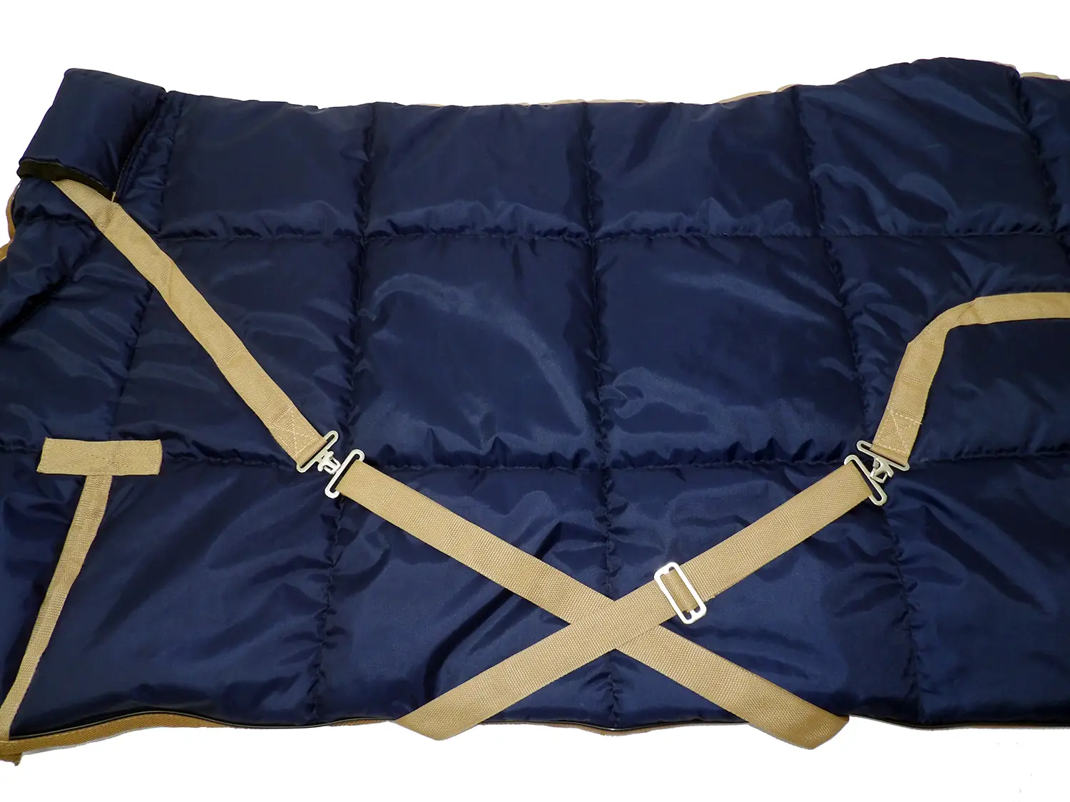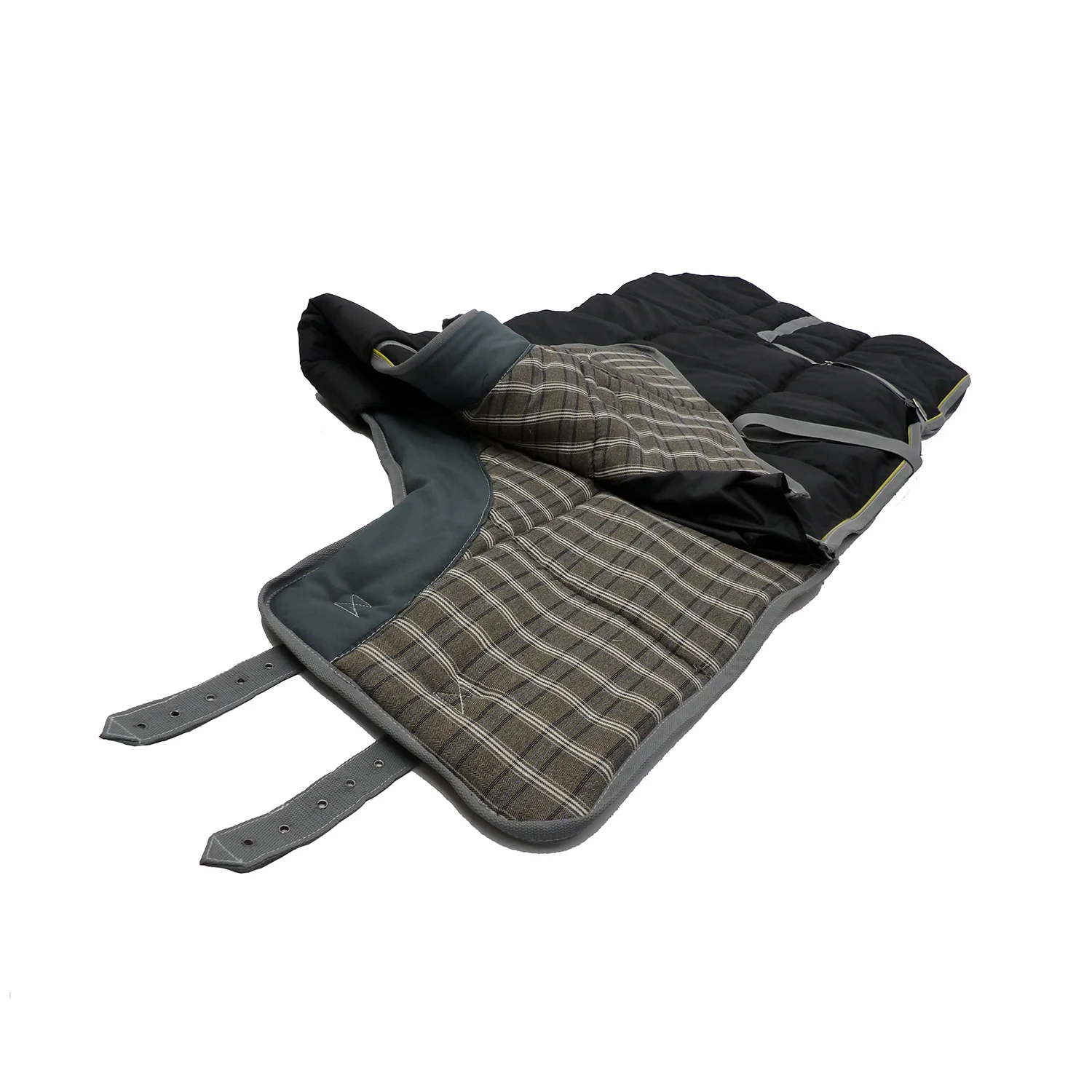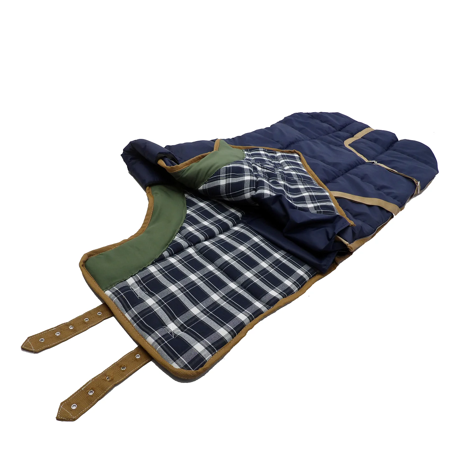 Manta de abrigo triple confeccionada en cordura, guata y villela.