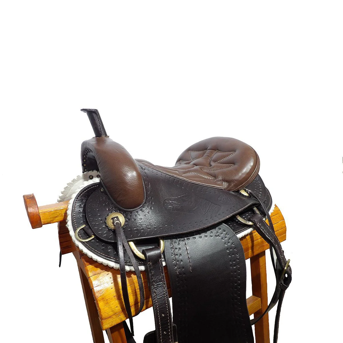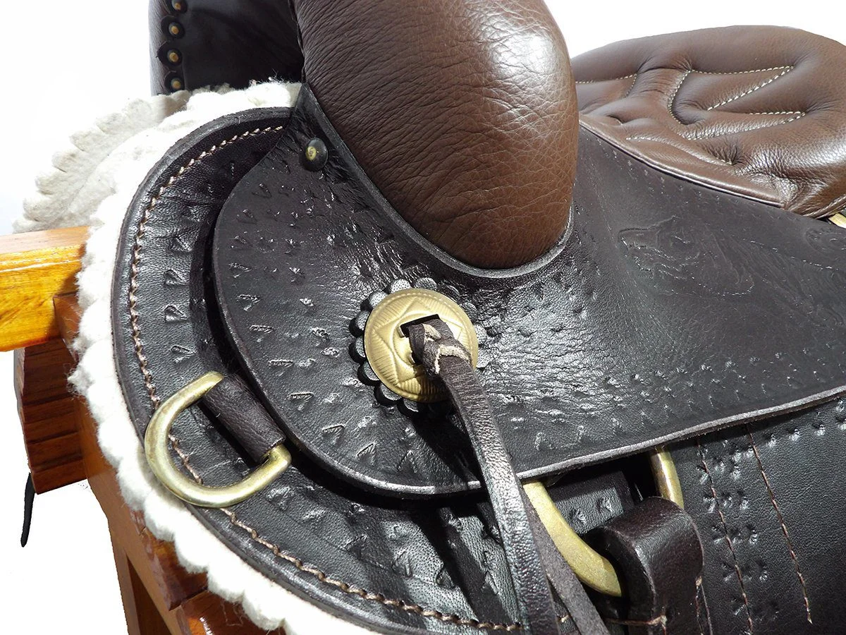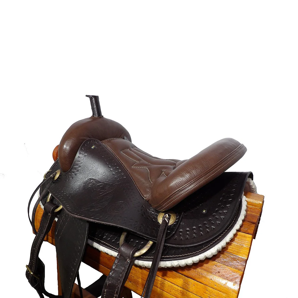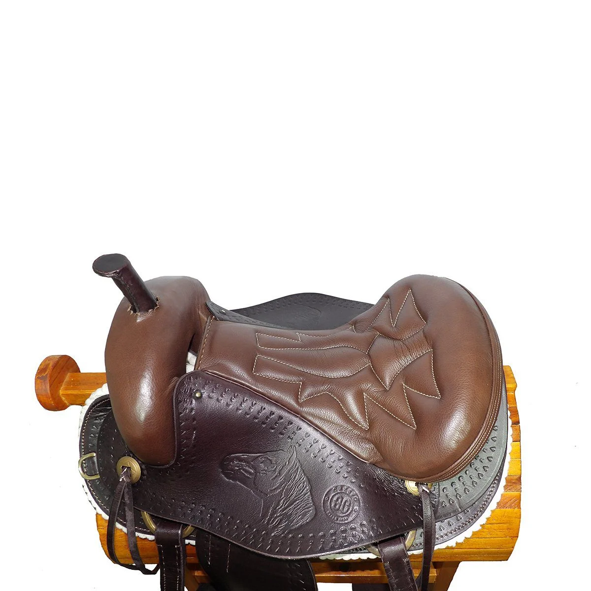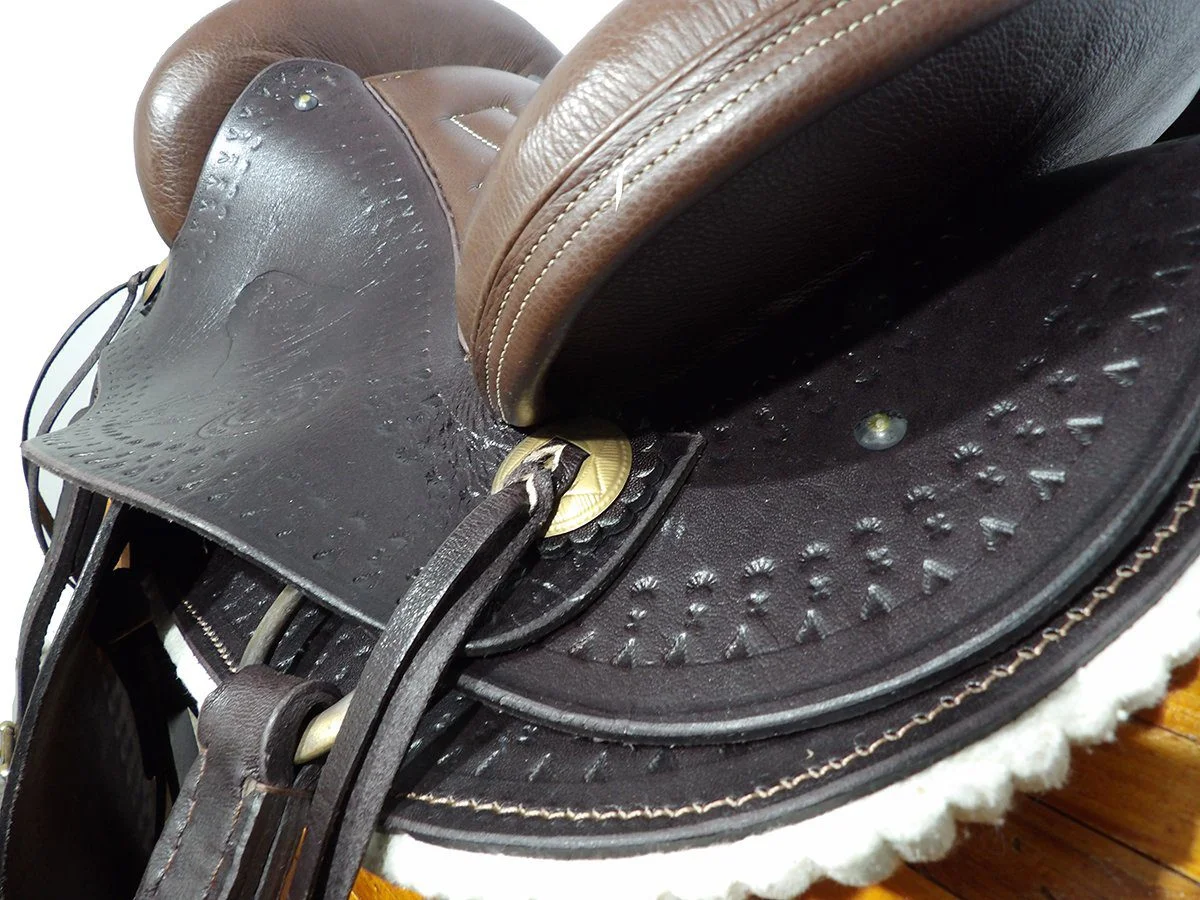 El armazón de la montura es de madera con una capa de fibra de vidrio y forrada en cuero de excelente calidad.
