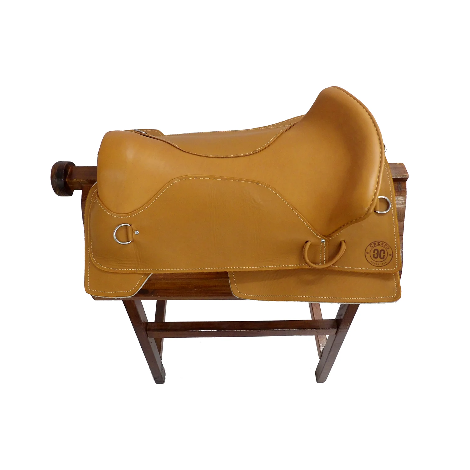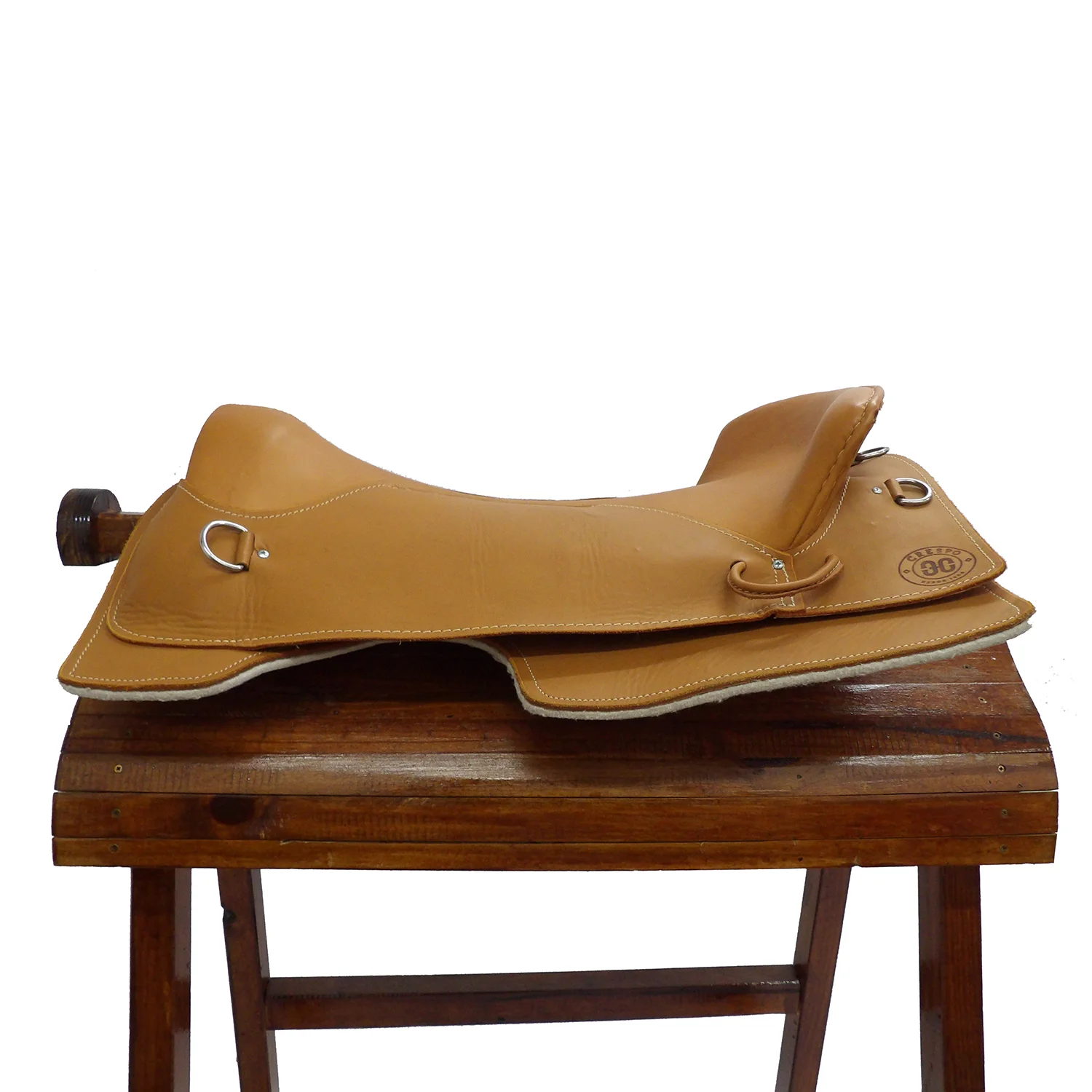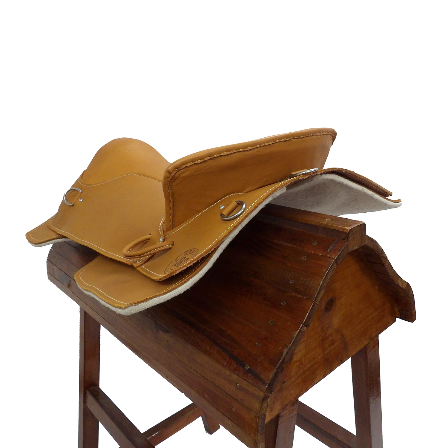 No posee accioneras visibles, los estribos van directamente agarrados al basto.
