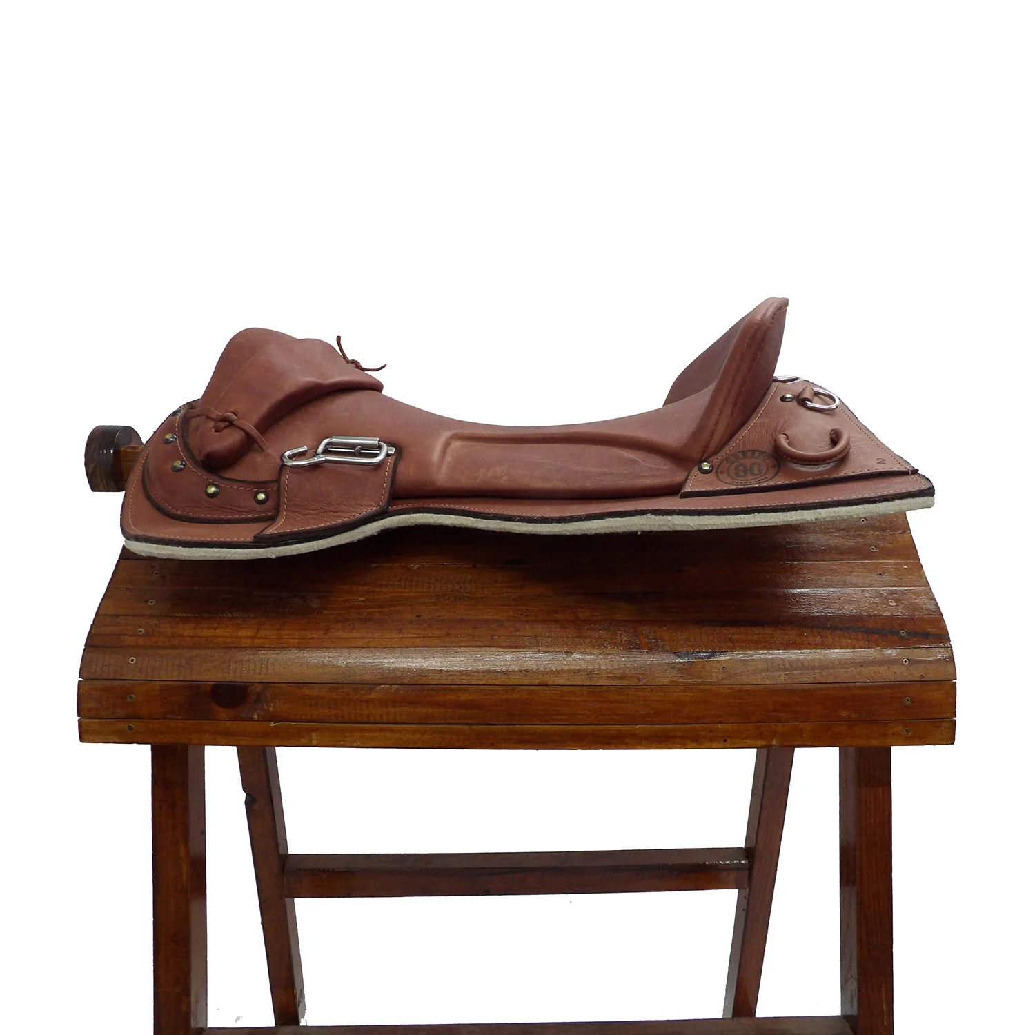 Asiento de goma eva forrado en cuero.