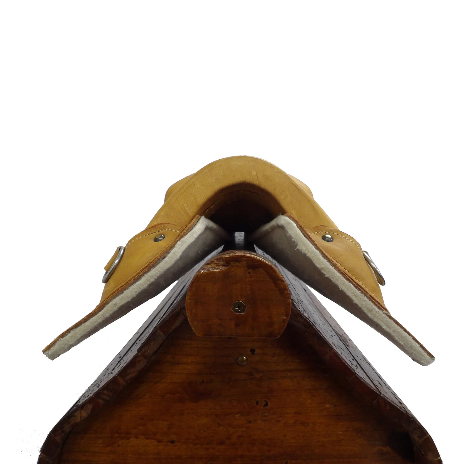 No posee accioneras visibles, los estribos van directamente agarrados al basto.