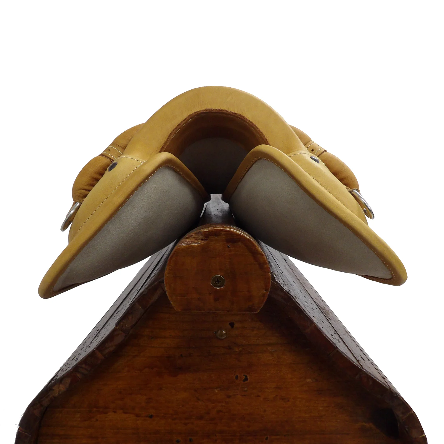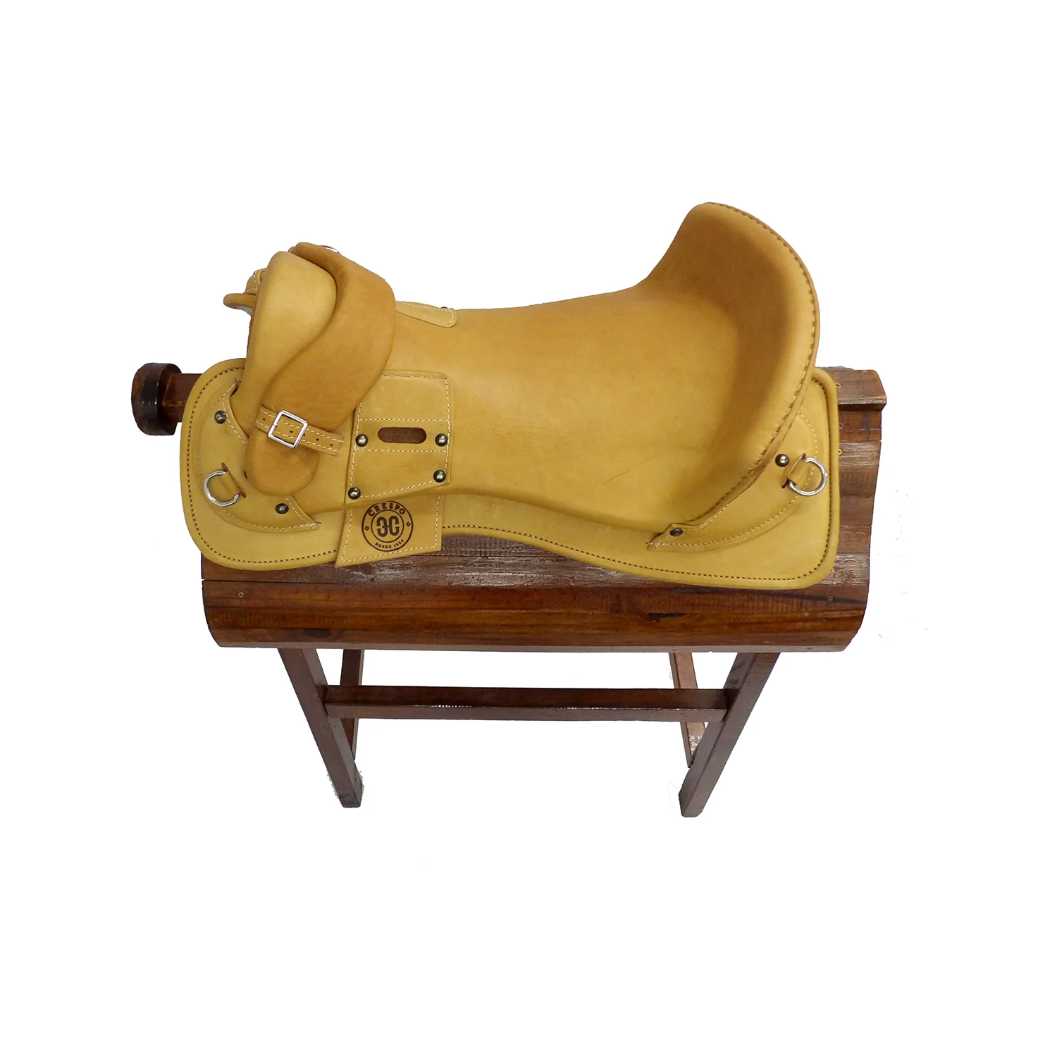 El armazón es de madera y forrado en cuero vacuno.