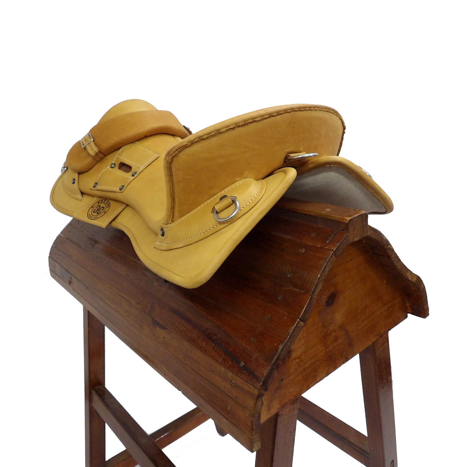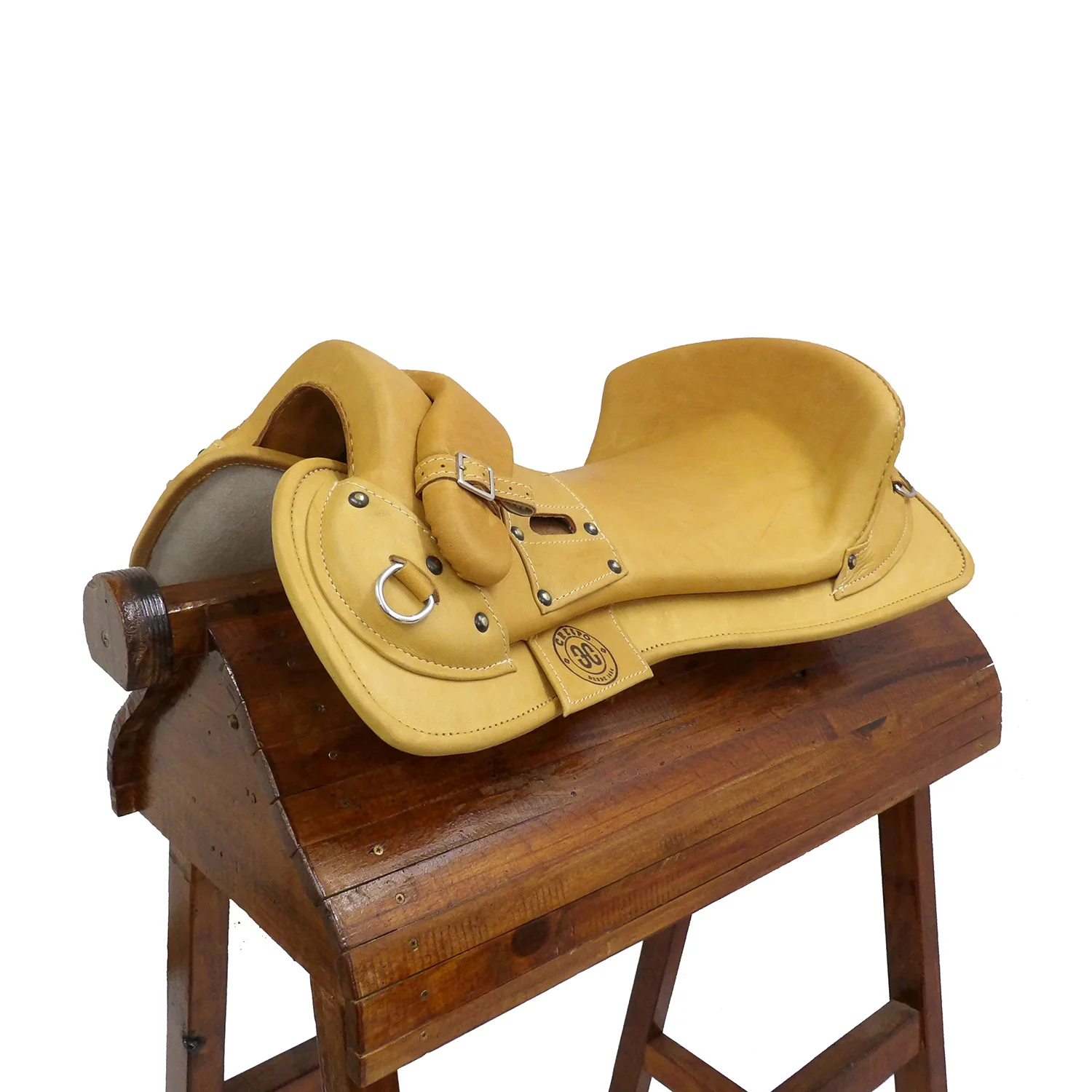 No posee accioneras visibles, las estriberas van directamente agarradas al basto.