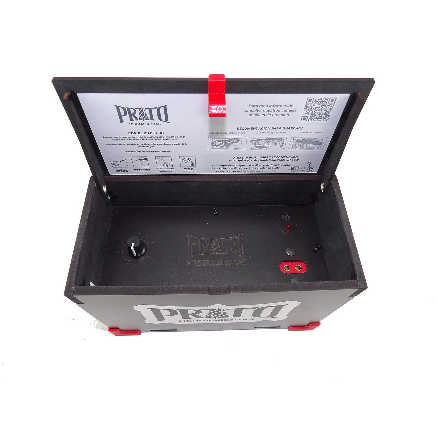 Esta es la versión más potente de Prato Pirograbadores. Es un equipo diseñado para uso profesional, con un regulador de temperatura que permite variar desde el mínimo a 220°C en solo segundos.