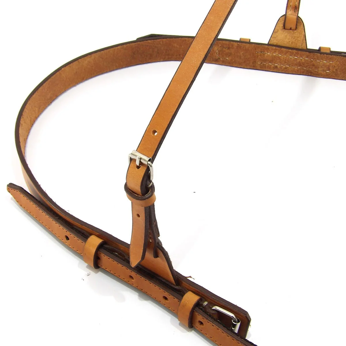 Pretal de suela natural para polo o pato. Cosido con hilo de nylon y con hebillas rolo cincadas. Es un pretal que se usa mucho en los deportes antes mencionados aunque no quita que se pueda usar para el trabajo diario.