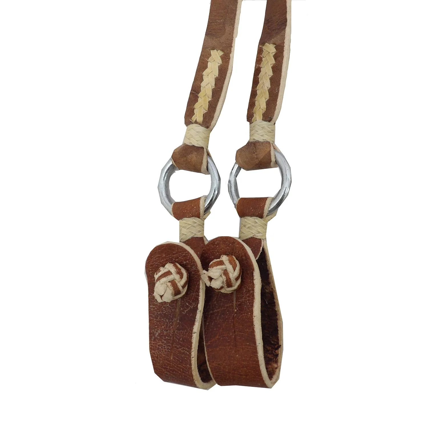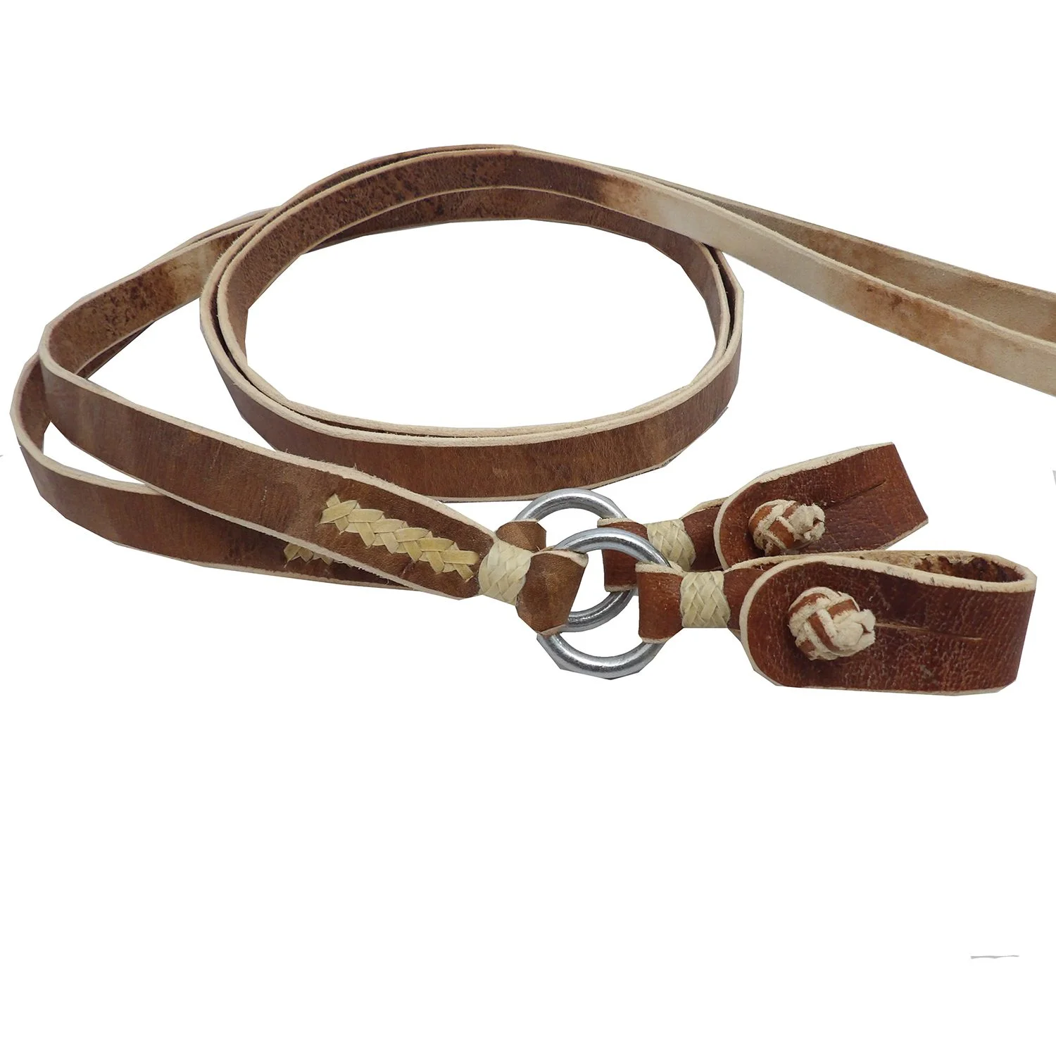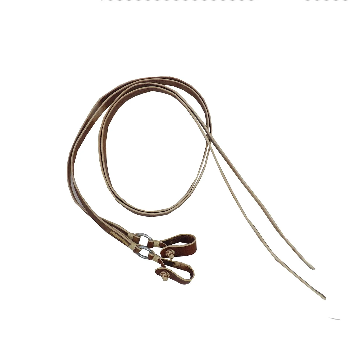 Riendas de cuero crudo doblada cosidas con tiento y argolla