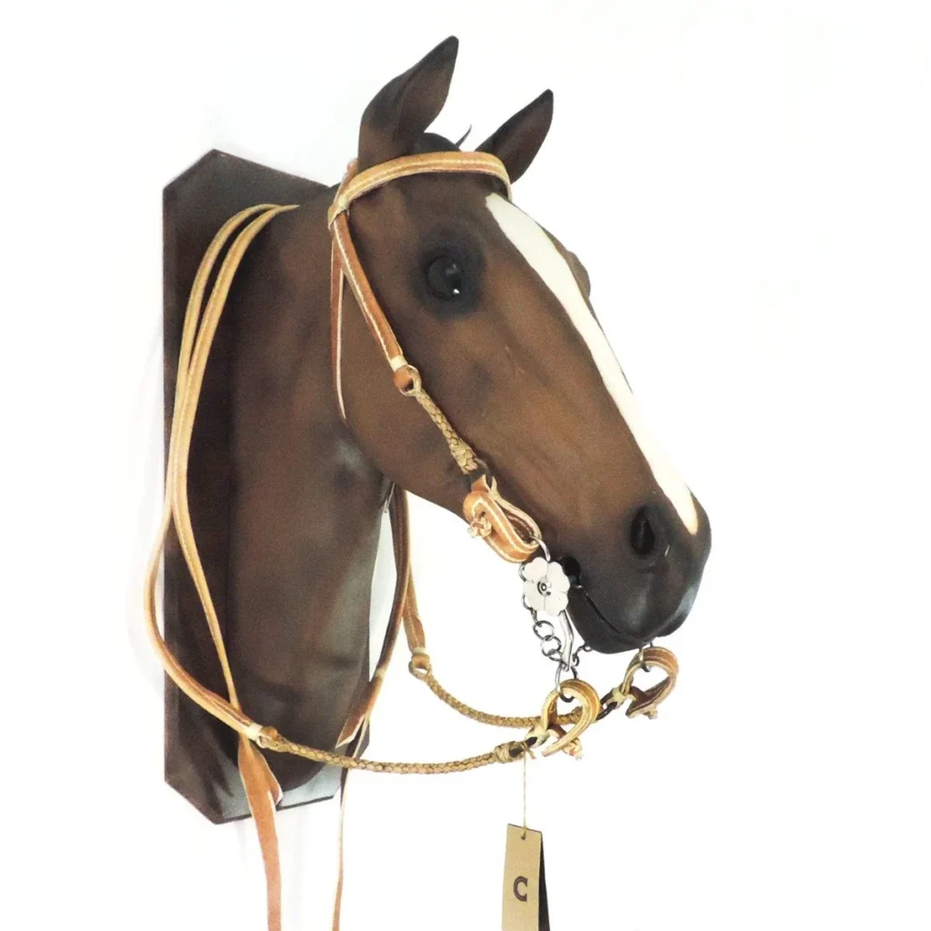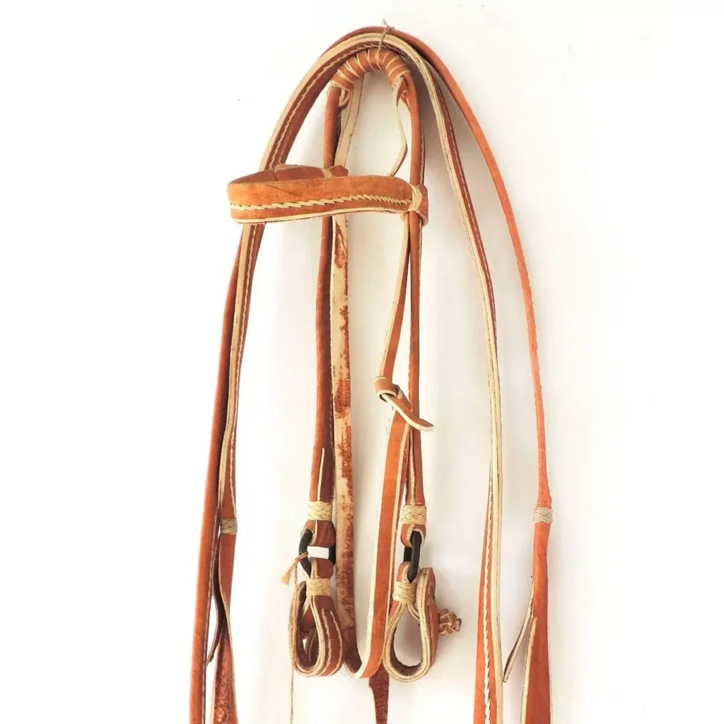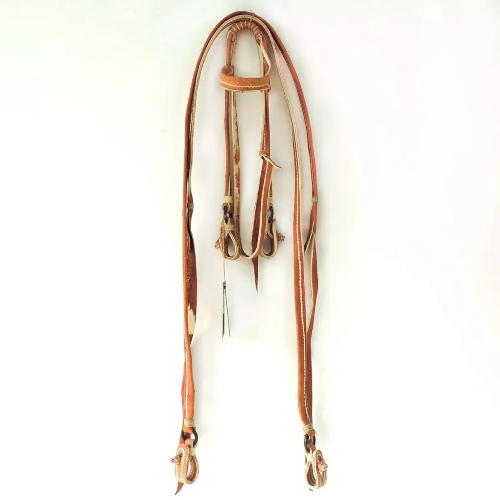 Cabezada y riendas de cuero crudo cosidas con hilo