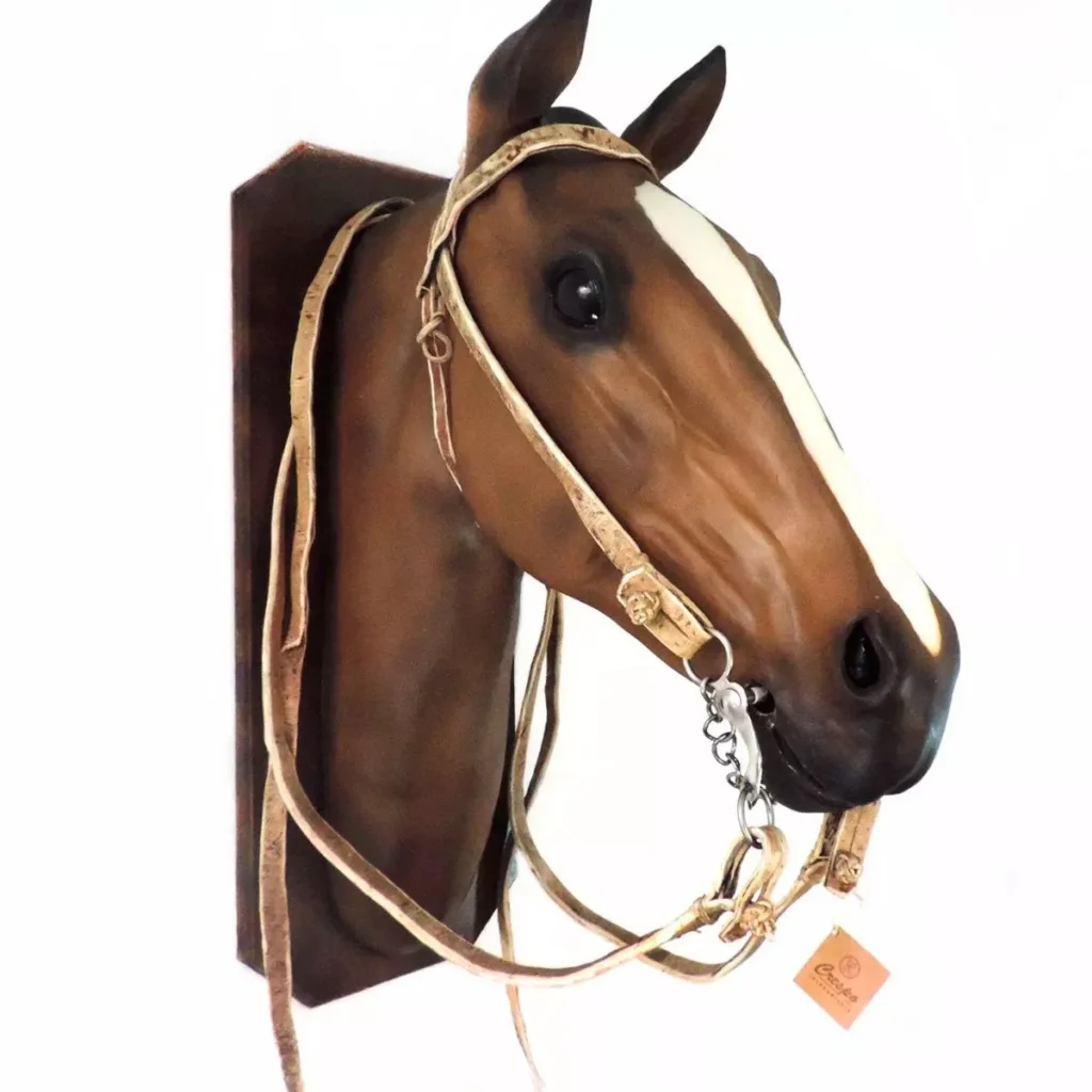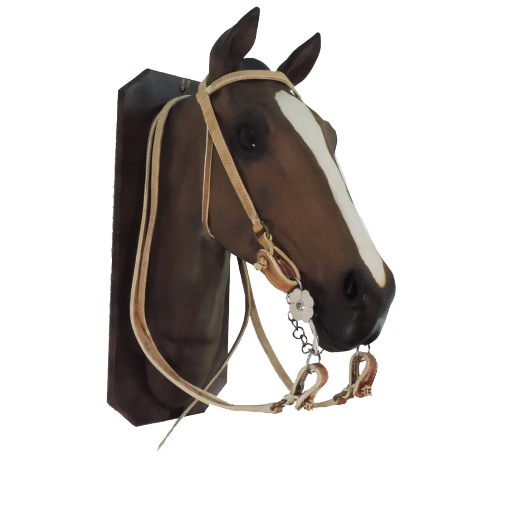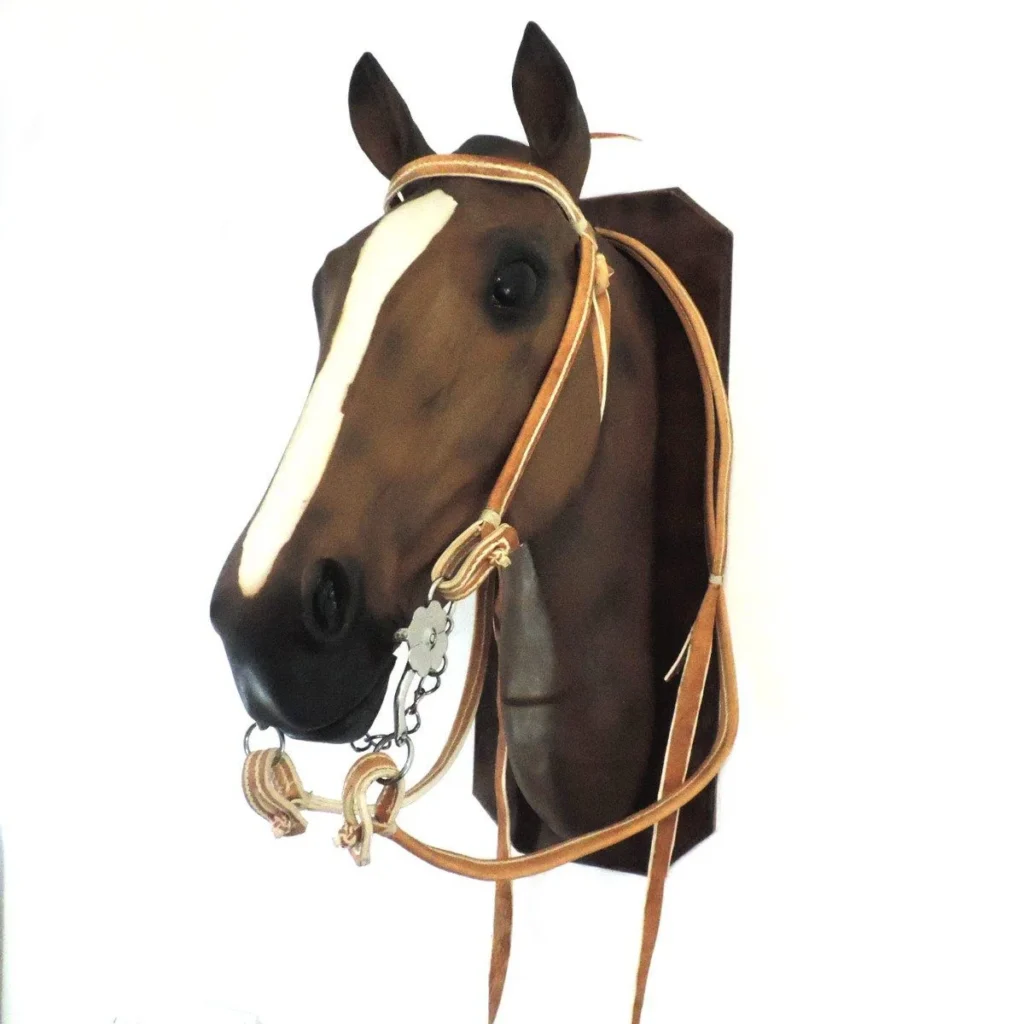 Cabezada y riendas de cuero crudo cosidas con hilo