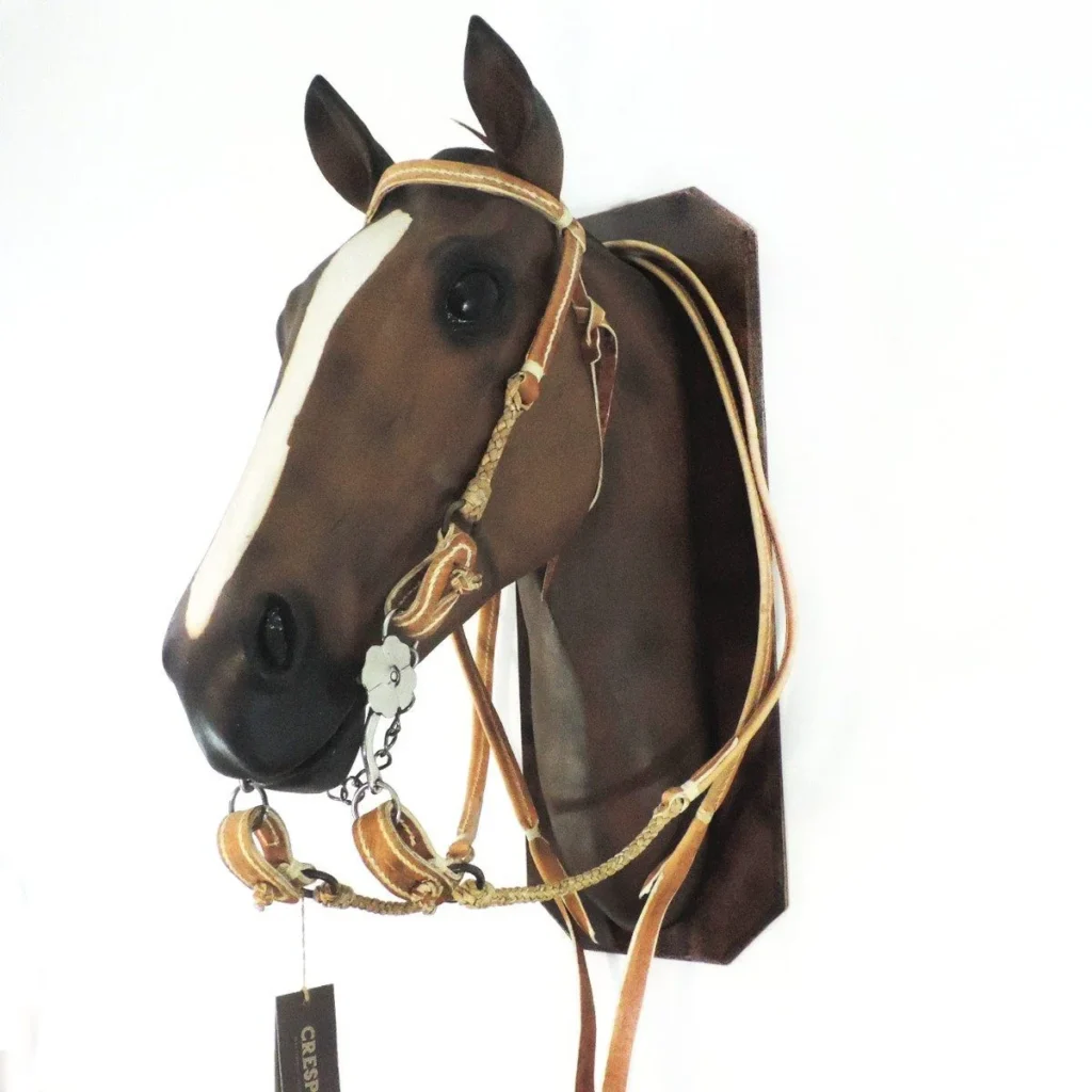 Cabezada y riendas de cuero crudo trenza chata con nudo frentero